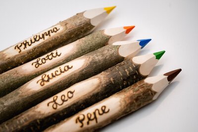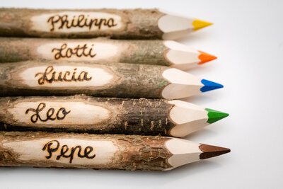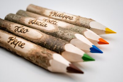 Einzigartige Buntstifte mit deinem Wunschnamen – 5er-Set Naturstifte